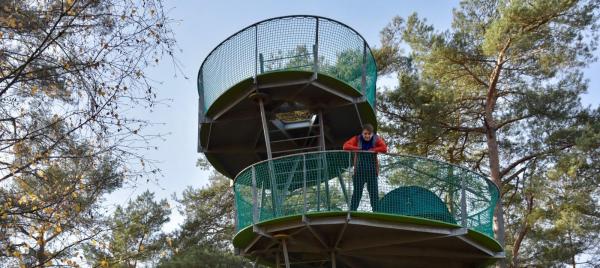 Op de Hoge Rielen, een uitgestrekt domein in Kasterlee, kampeer je midden in de natuur mét toiletten en douches dichtbij. Je kan blijven slapen op het kampeerterrein, of op een spectaculaire kampeertoren met vier kampeerplateaus die als boomhutten in de lucht worden gehouden.