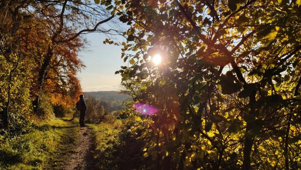 Deze stevige wandeling van 11,7 km trakteert je dan ook op enkele uitdagende hellingen, maar ook op rustige bossen, uitgestrekte velden, typische vakwerkhuisjes, kastelen en dassenburchten.